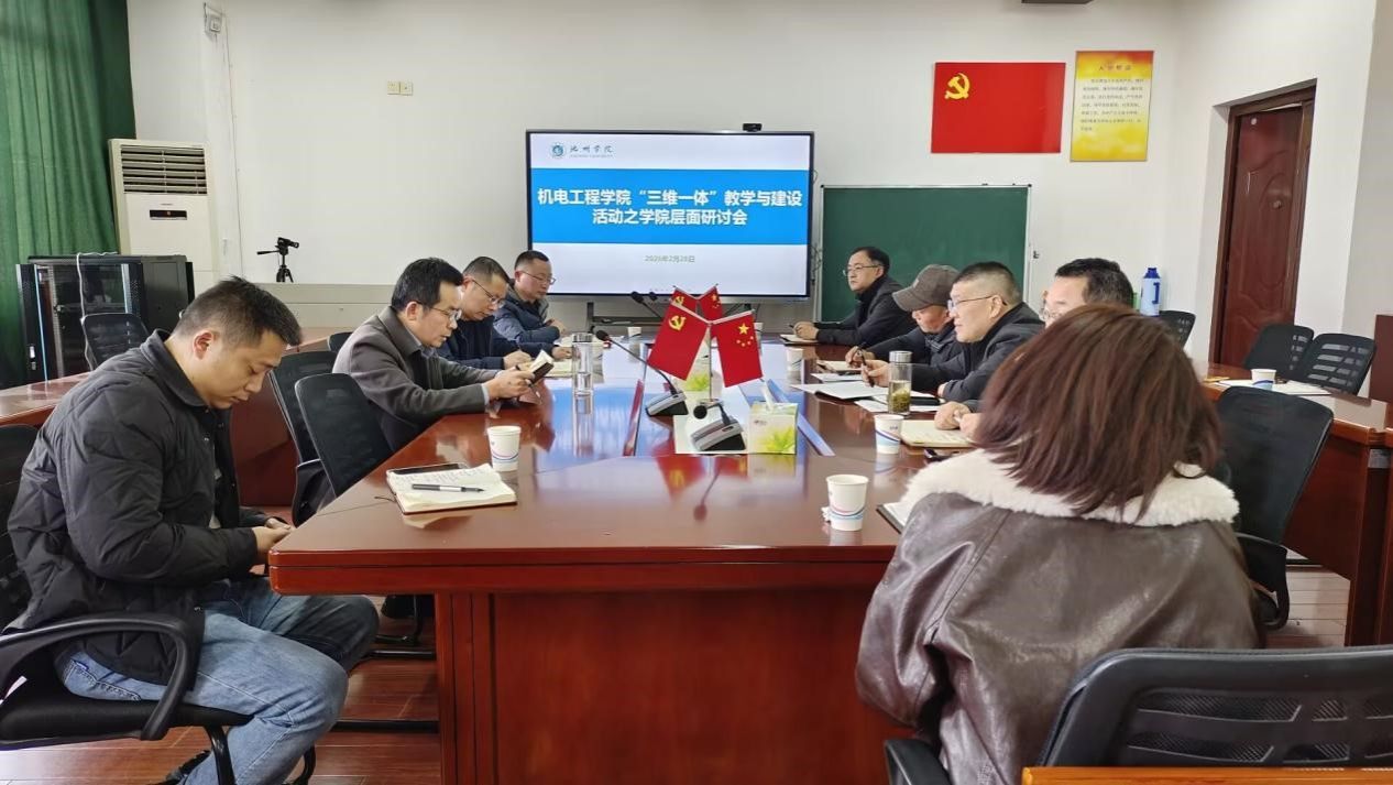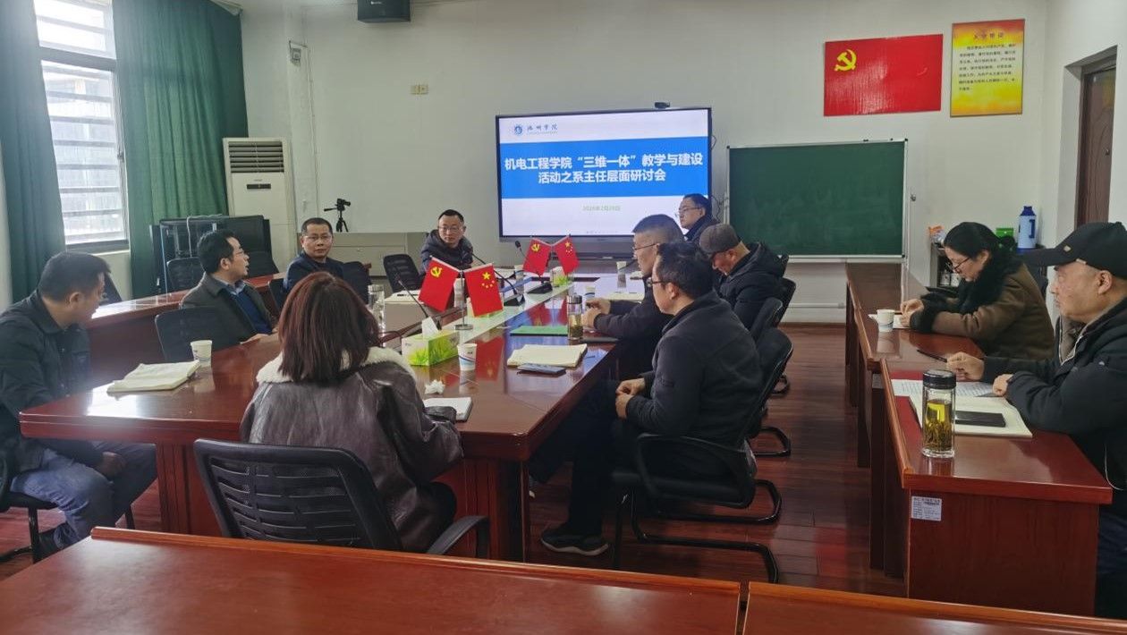 2月28日上午,机电工程学院“三维一体”教学与建设研讨会在逸夫楼316会议室召开。学校教务处处长周恺、学院党委书记许卫兵、副院长许业军出席,各系、实验实训中心及教学办负责人参会,会议由许业军主持。