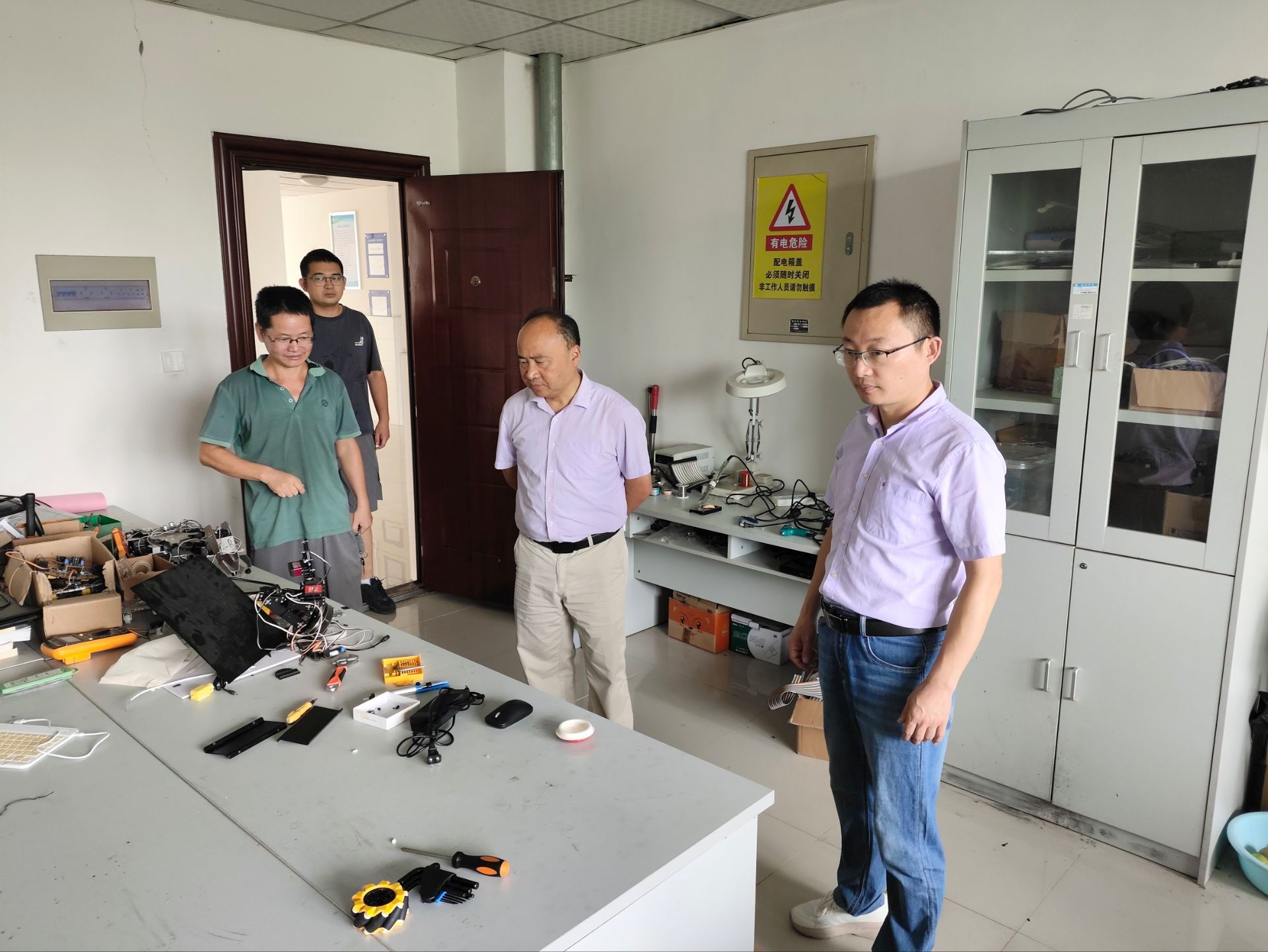 此次检查由机电工程学院副院长许业军带队,联合实验实训中心组成专项检查组,深入逸夫北楼各实验室,对实验室安全、实验室环境、实验室安全规章制度等重点内容展开细致排査。在实验室安全检查中,检查组着重对开放实验室进行检查,要求各开放实验室负责人做好假期安全工作,假期需要使用实验室的严格落实实验室备案制度。