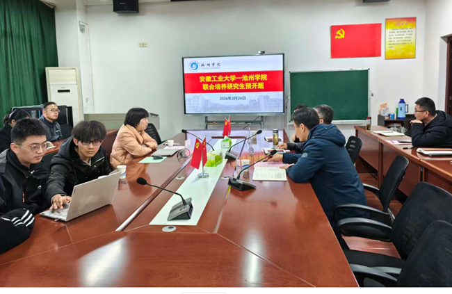 3月24日,机电工程学院与安徽工业大学联合培养研究生开题报告会在逸夫楼316会议室举行。安徽工业大学李丹教授及联合培养研究生应邀参会,池州学院科研处副处长徐华结、机电工程学院副院长(主持工作)张国青、副院长许业军及部分教师参加,会议由张国青主持。