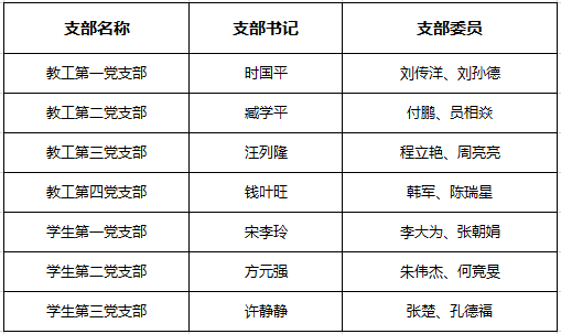 委员(按姓氏笔画排序):刘景景、汪列隆、时国平、张勋友、吴卫锋、钱叶旺、臧学平